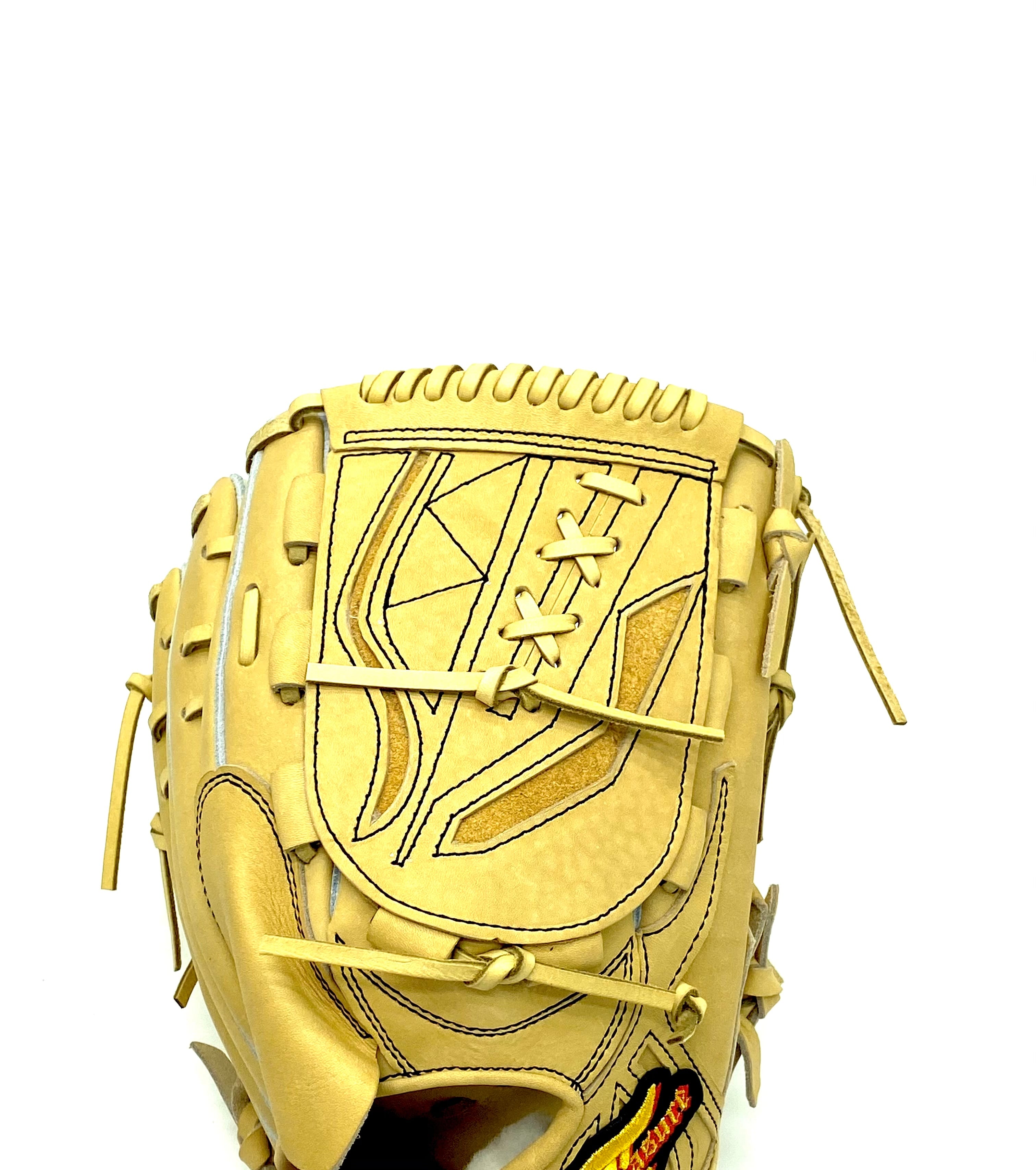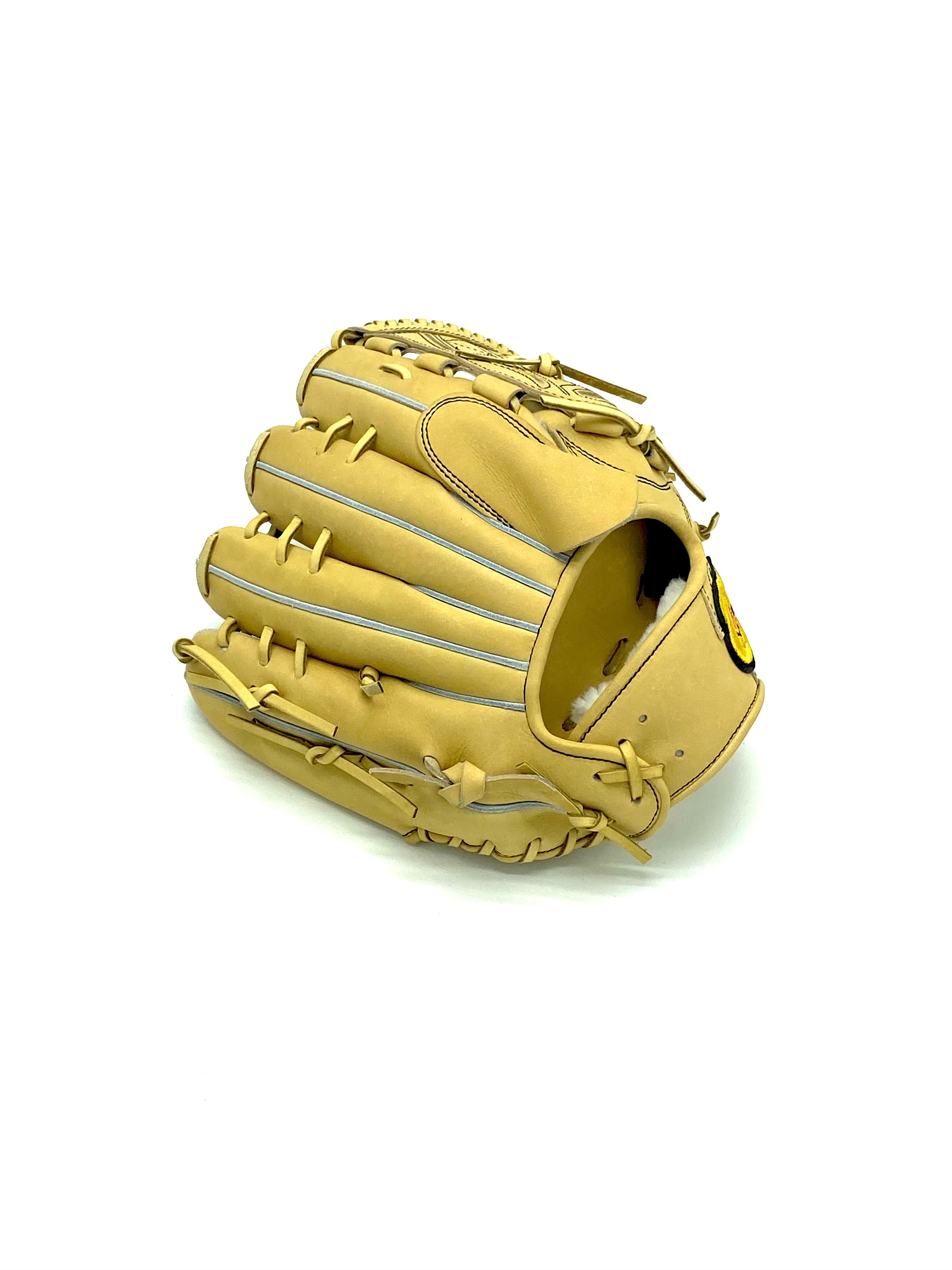 オーソドックスな投手用。捕球面が広くポケットも深く作れる握り潰すイメージの横型モデルです。